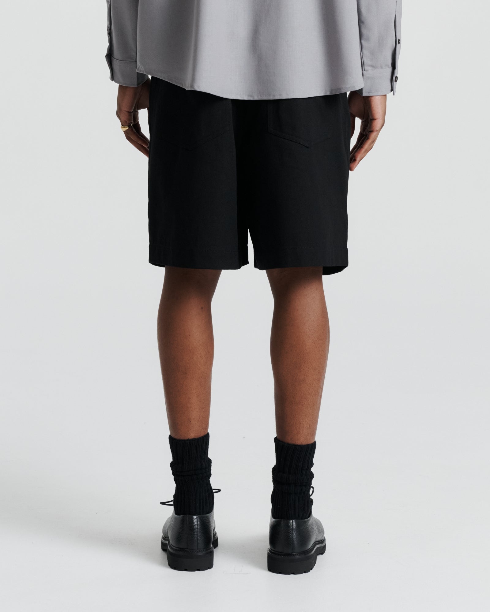The Charlie Short is a relaxed, oversized short cut from mid-weight cotton twill. Designed with a voluminous silhouette that falls just below the knee, it features a half-elasticated waistband for a balance of structure and ease. Embroidery at the belt loops adds a subtle point of distinction, while rounded pockets and clean finishing underscore its utilitarian character.