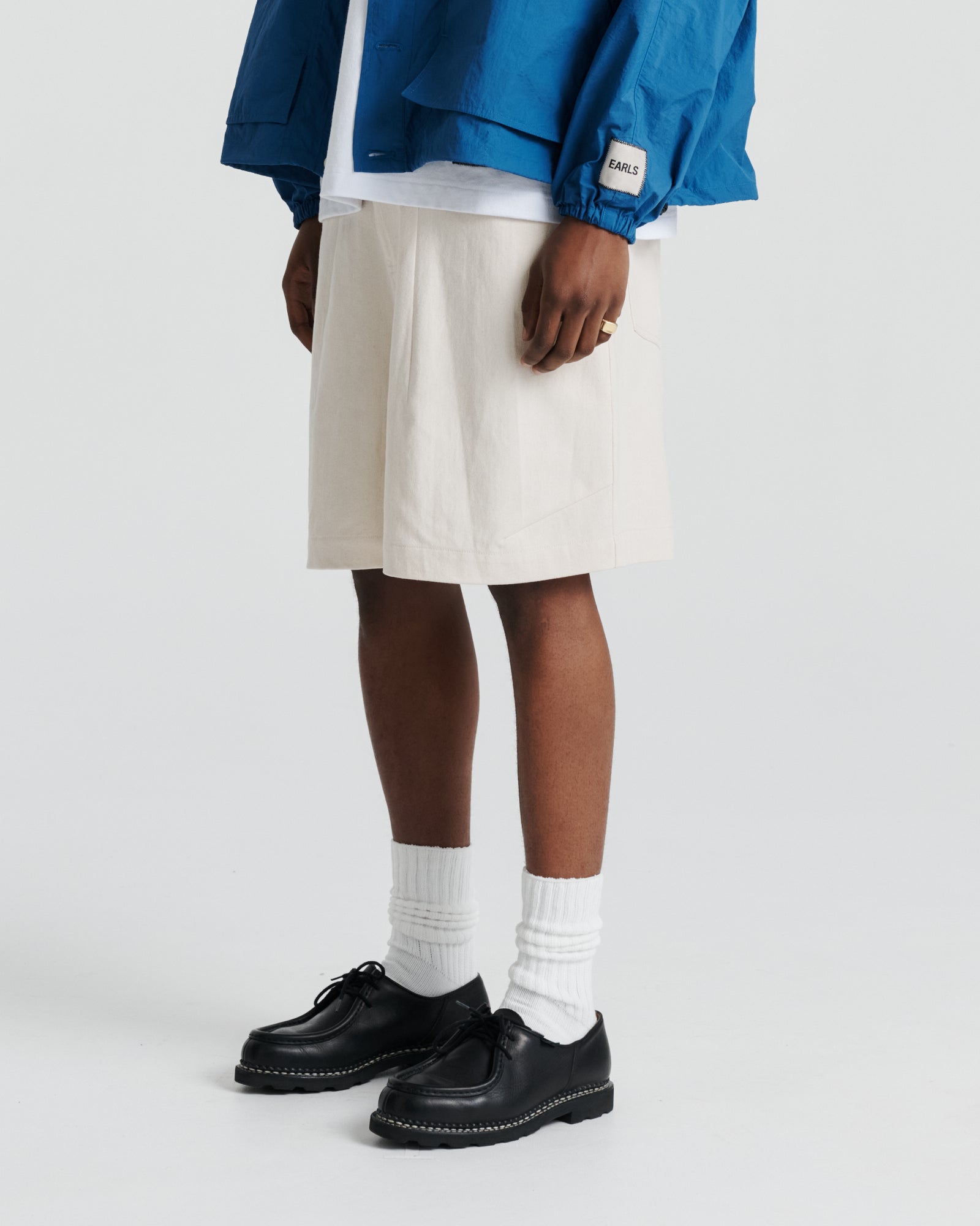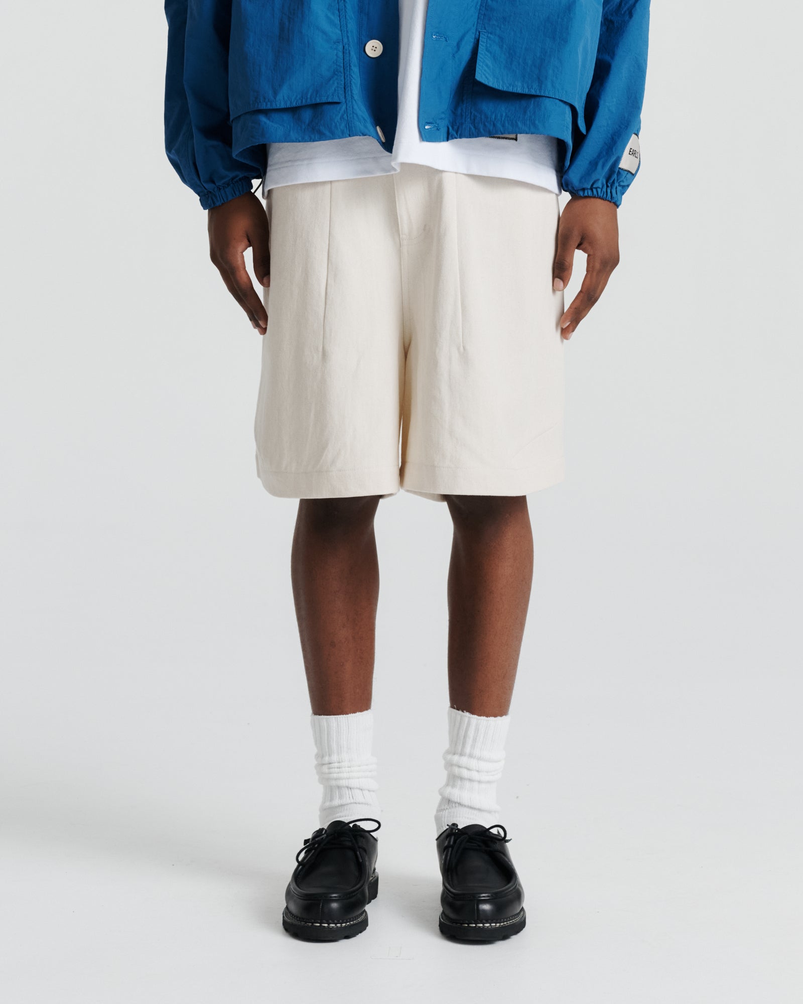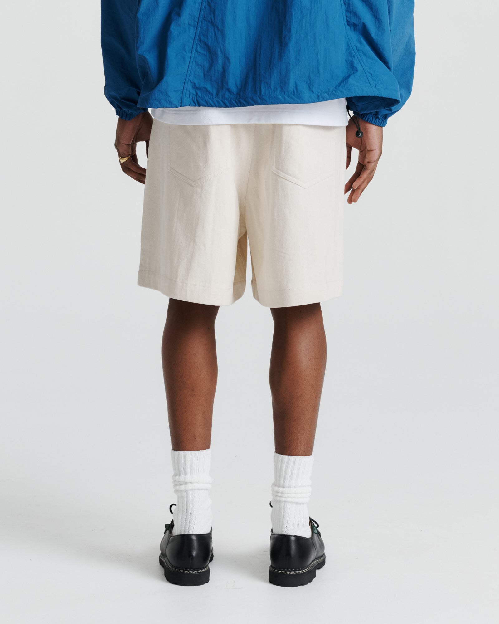 The Charlie Short is a relaxed, oversized short cut from mid-weight cotton twill. Designed with a voluminous silhouette that falls just below the knee, it features a half-elasticated waistband for a balance of structure and ease. Embroidery at the belt loops adds a subtle point of distinction, while rounded pockets and clean finishing underscore its utilitarian character.