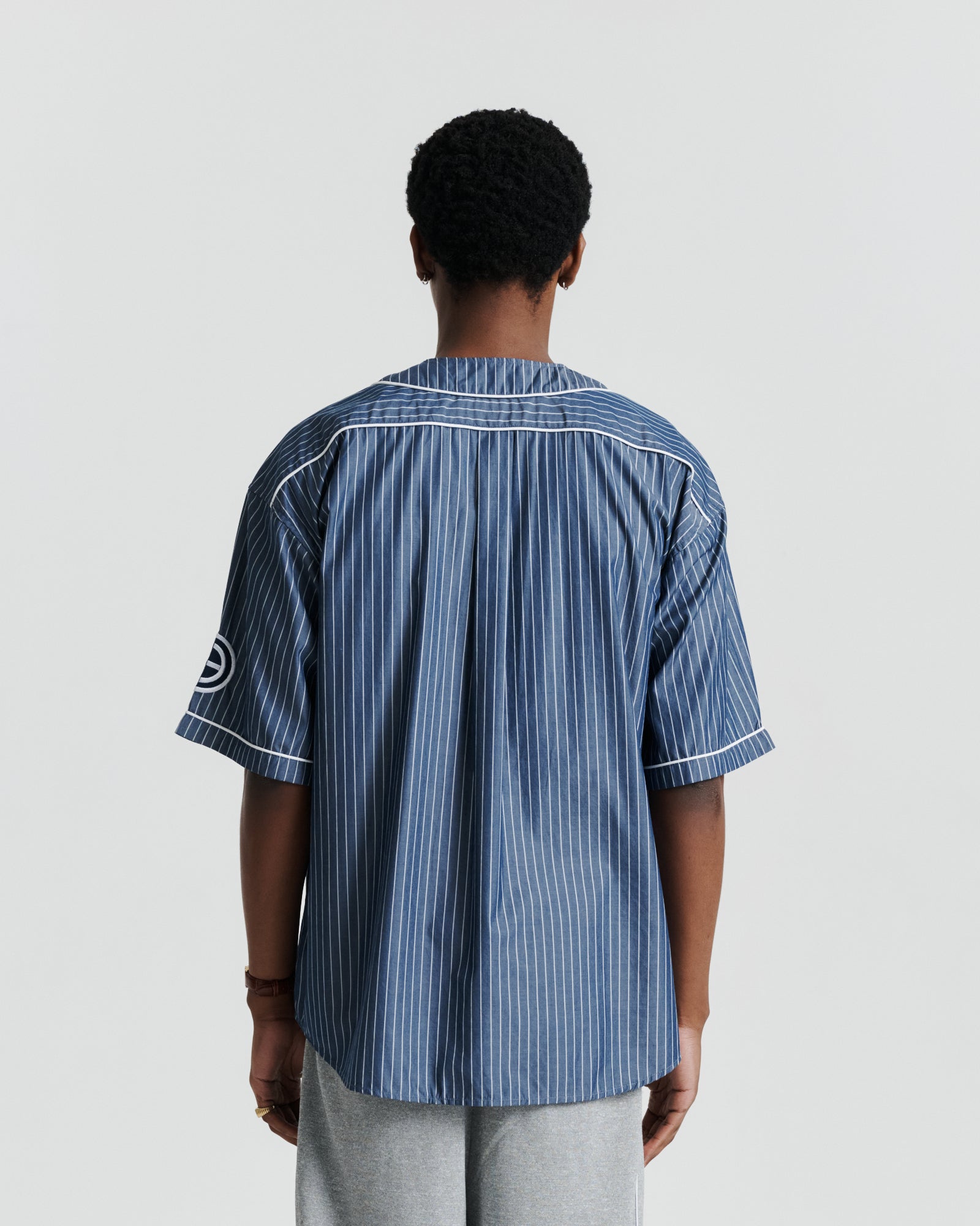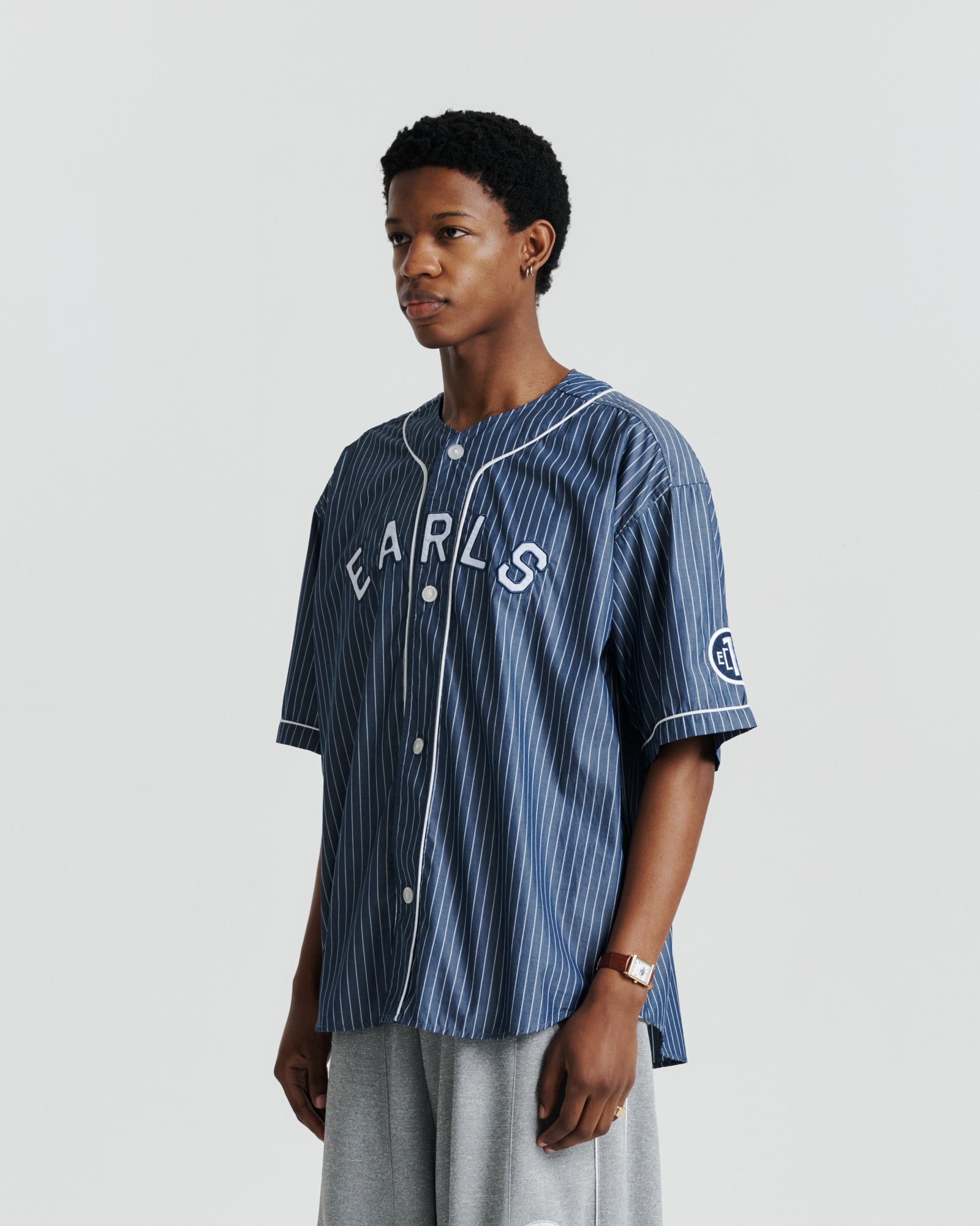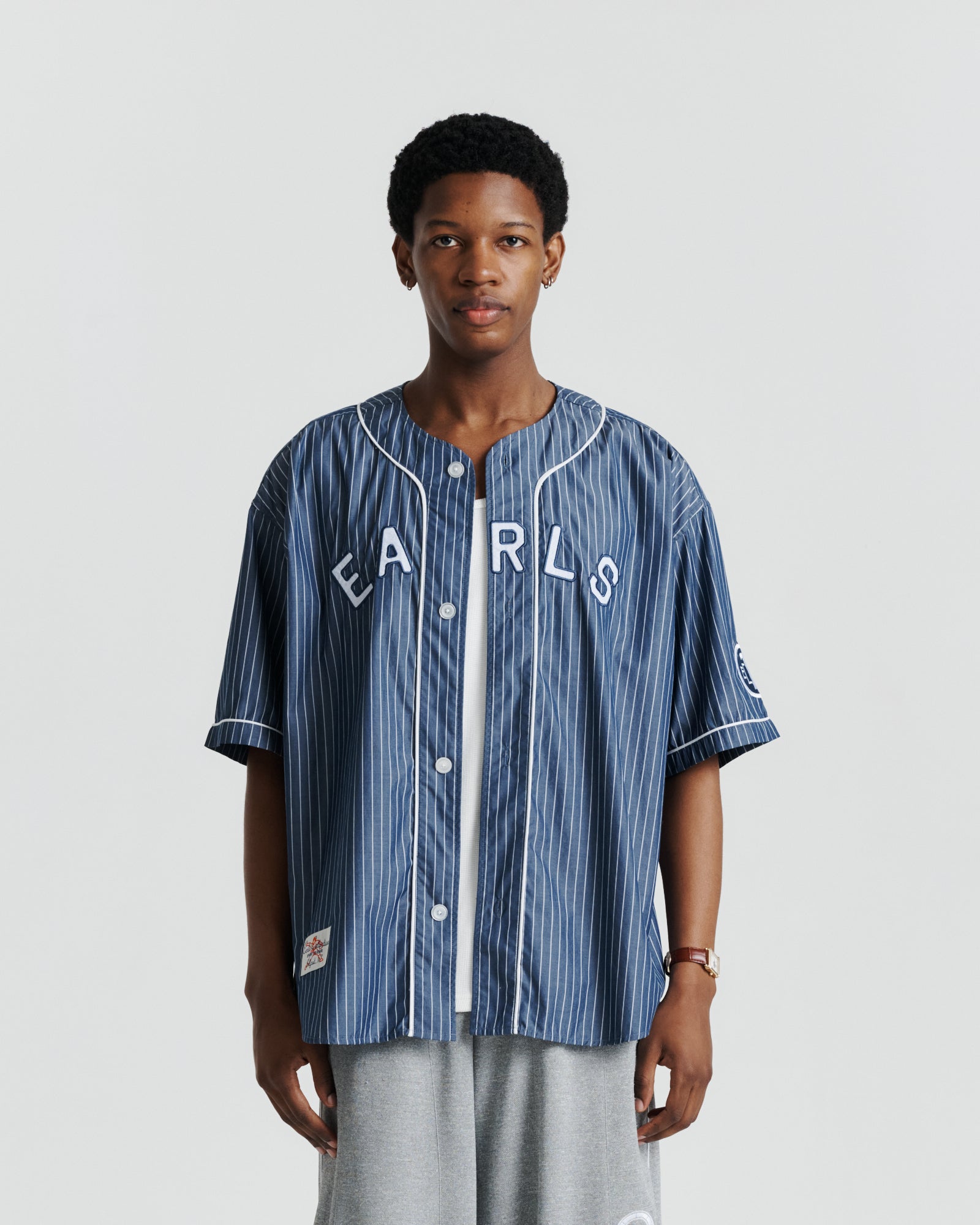 The Baseman Shirt reimagines a sporting classic through a refined lens. Crafted from 100% cotton using superfine compact yarn, it delivers a crisp yet lightweight handfeel that elevates everyday wear. A bold felt 'EARLS' applique spans the chest, contrasted with piping along the sleeves and placket for a sharp, athletic finish. The design is completed with the Earls Sportswear woven label, placed just above the hem for a subtle signature detail.