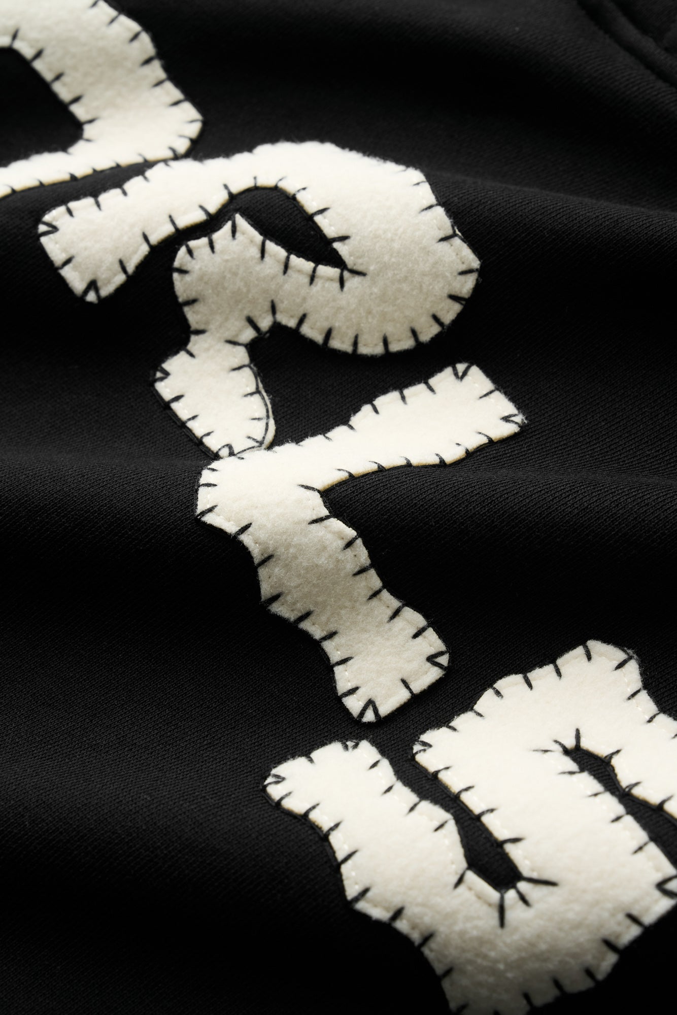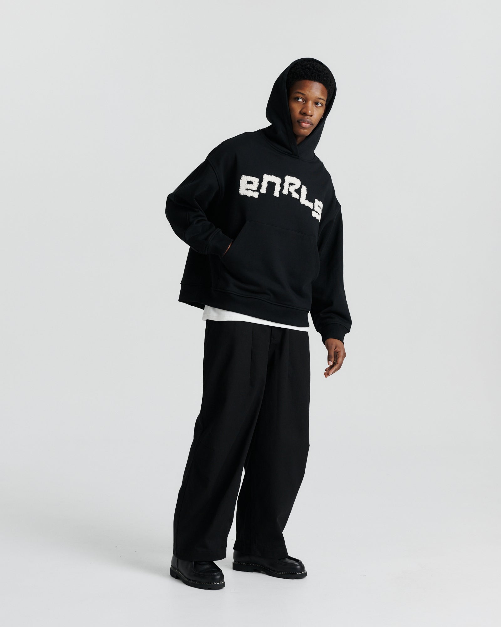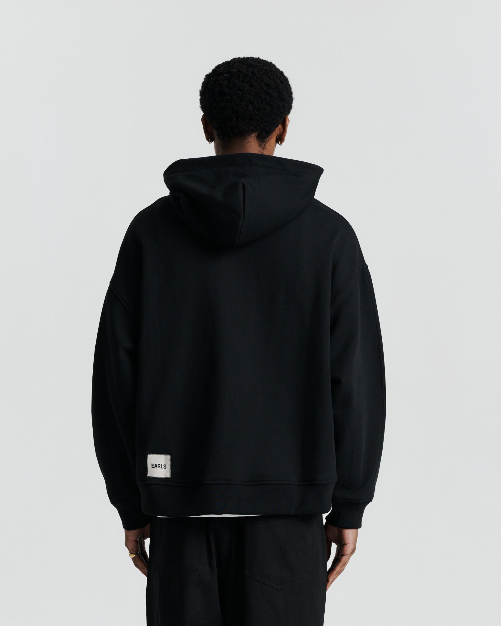 The Blanket Hood is a heavyweight French terry hoodie designed for comfort and statement appeal. Constructed from 480gsm 100% cotton, it offers a substantial feel with a soft, loopback interior. The boxy, oversized fit enhances its relaxed silhouette, while a blanket-stitched felt applique at the centre-front chest adds a crafted, textural detail.