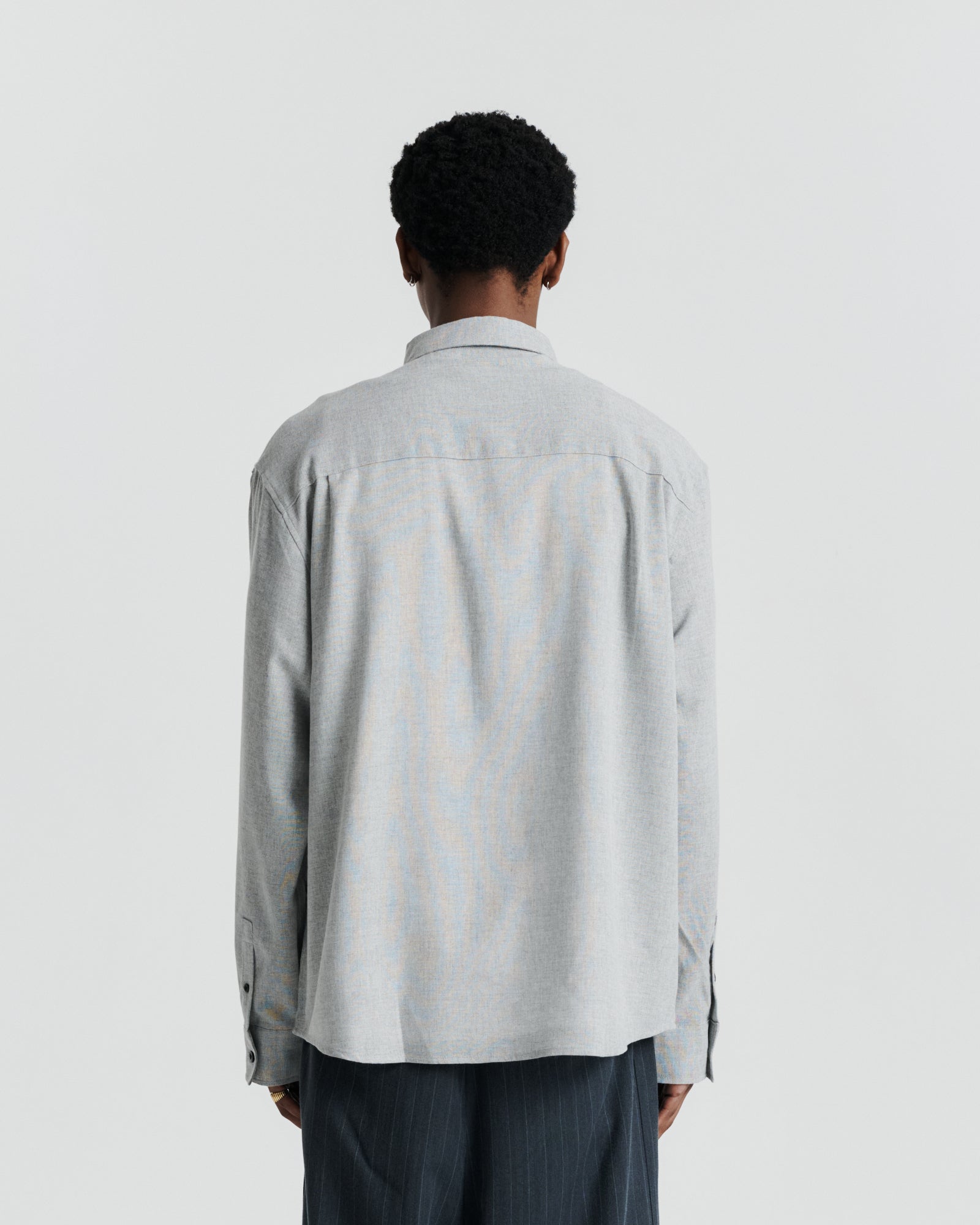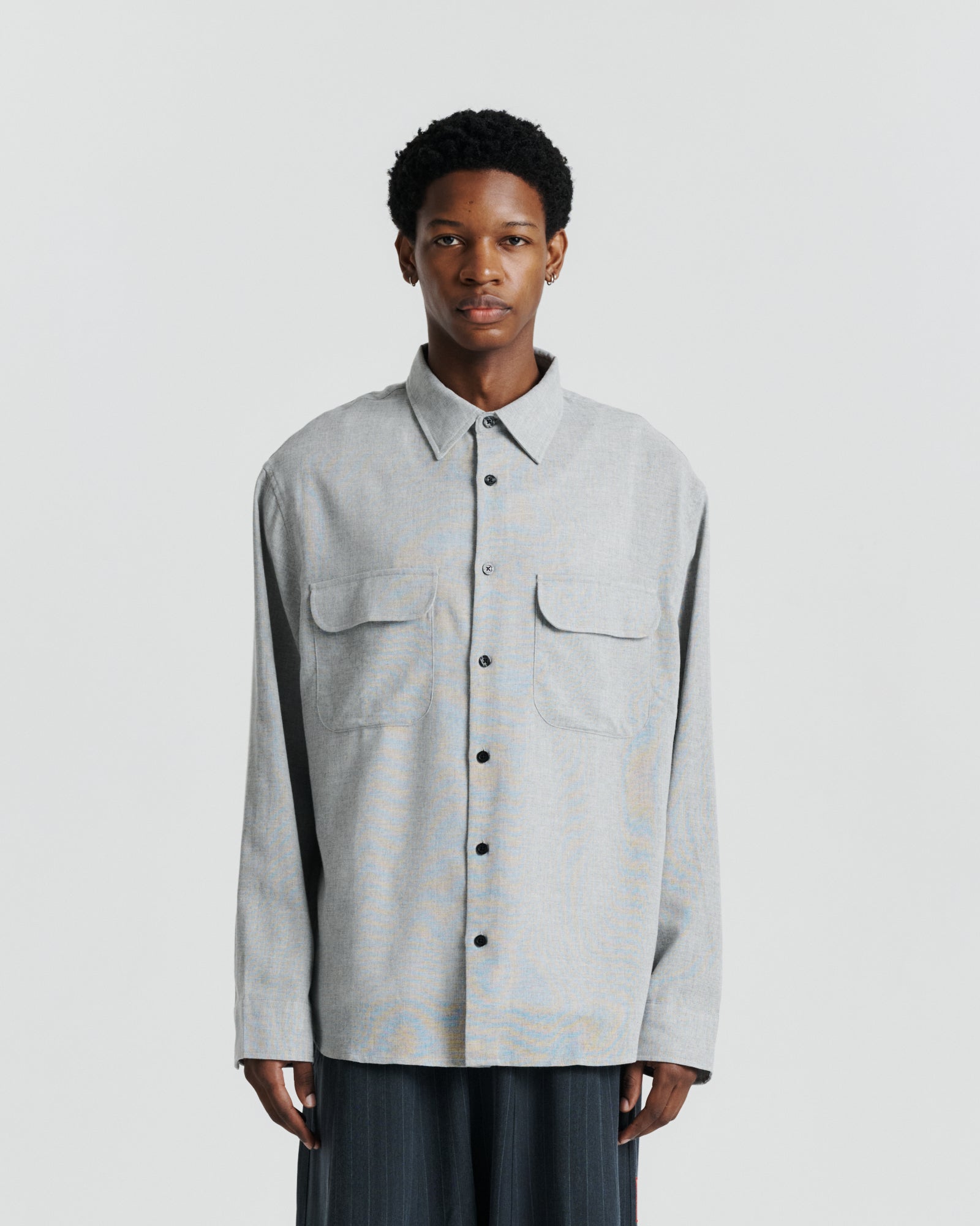 The Flap Pocket Shirt is a versatile long-sleeve style combining utility-inspired details with a refined finish. Crafted from a soft yet structured wool blend, it features a full-length button-down placket and statement flap pockets at the chest. Embroidery hidden beneath each pocket flap adds a subtle signature touch, while a back yoke enhances the fit and drape. Designed for layering or standalone wear, it offers year-round versatility.