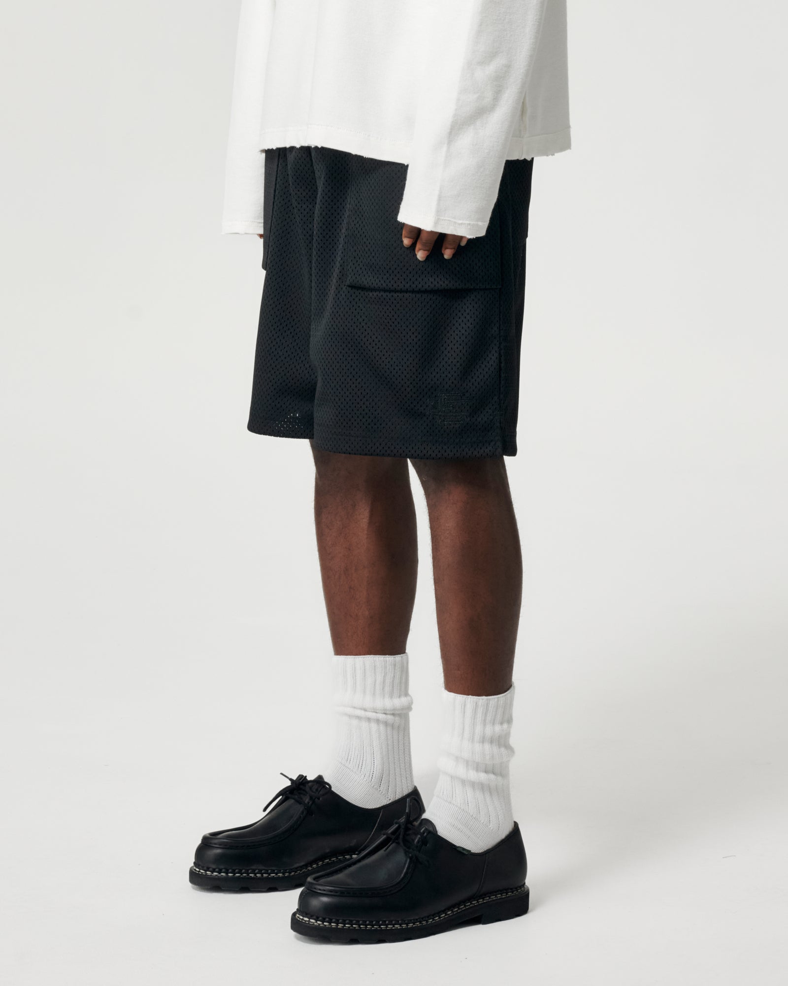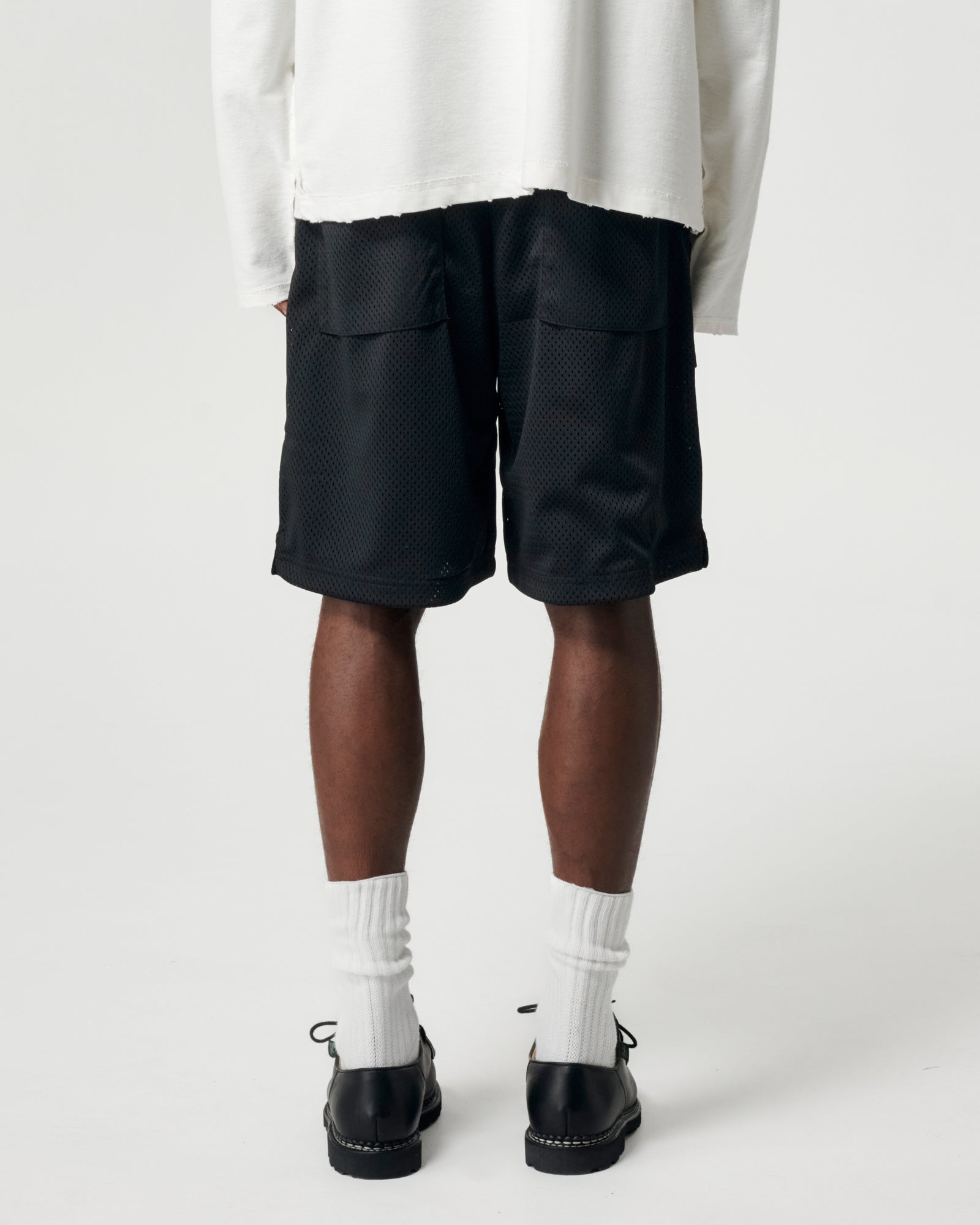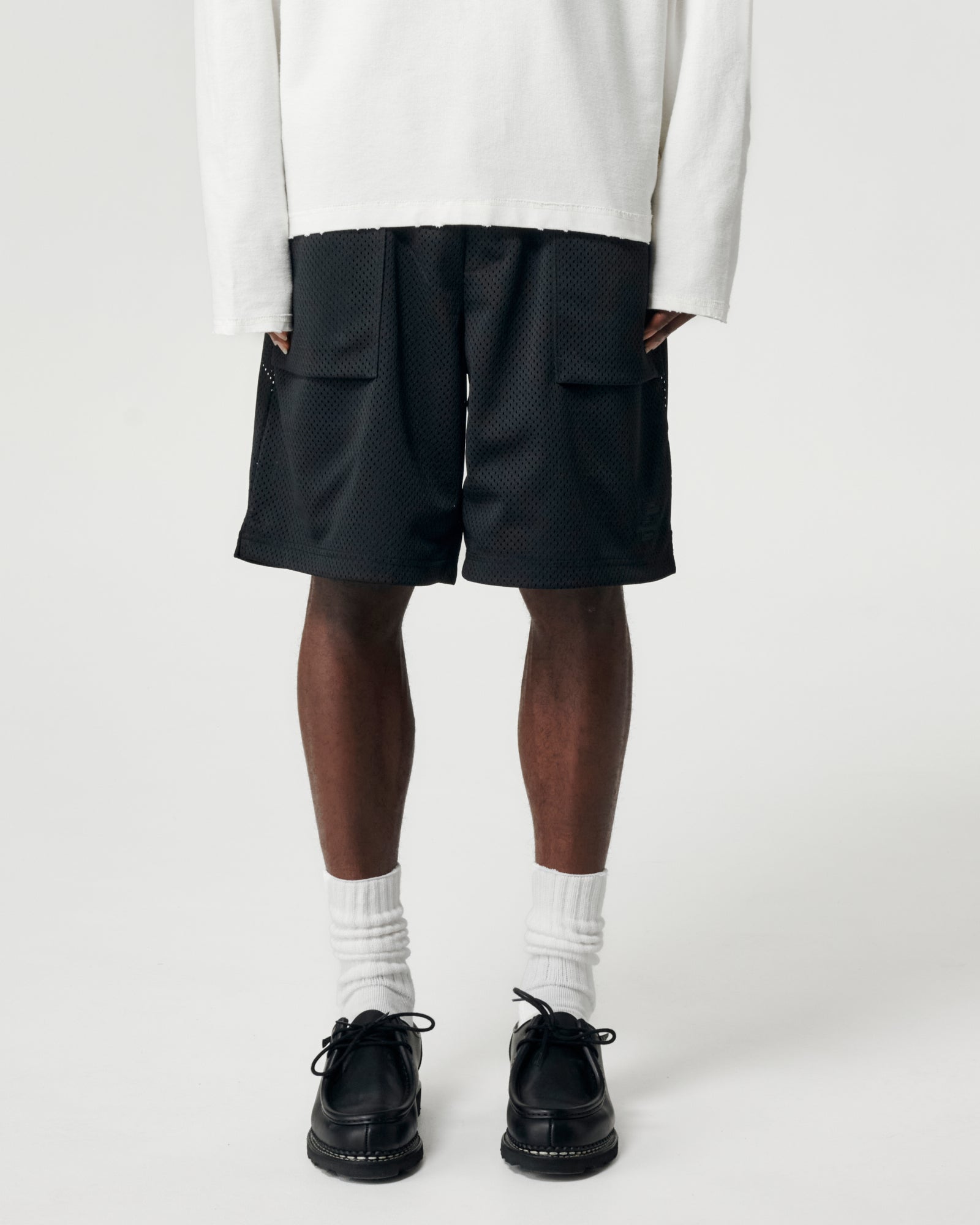 The Longline Mesh Shorts are an elevated knee-length piece that seamlessly blends performance with contemporary design. Made from durable polyester mesh, these shorts feature subtle chainstitch 'ec' branding for a refined, minimalist look. The distinct 2-layer pocket construction adds both functionality and a unique design touch, ensuring both practicality and style. Perfect for relaxed days or active moments, these shorts bring comfort and sophistication to any casual outfit.