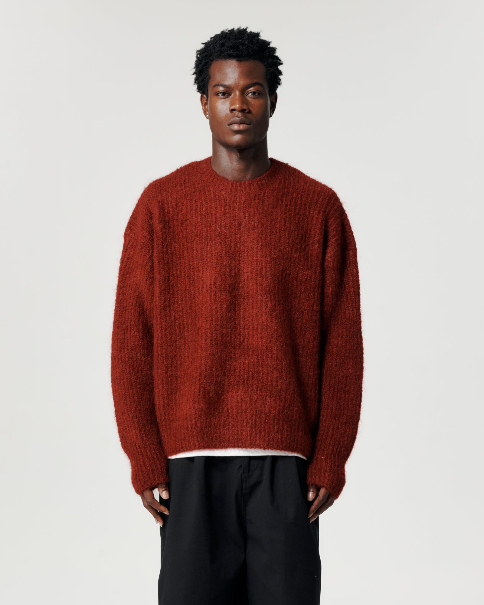 The Mohair Knit Crew is a heavyweight true knit sweater that combines timeless style with a contemporary, street-ready silhouette. The finely crafted 'Earls' embroidery across the back adds a distinctive touch, while the cropped, boxy fit blends heritage aesthetics with modern sensibilities. Crafted from a premium mohair blend yarn, this piece offers exceptional softness, durability, and breathability. Mohair’s natural resilience ensures long-lasting shape retention, while nylon and spandex enhance flexibility and comfort, making it an ideal knit for year-round wear.