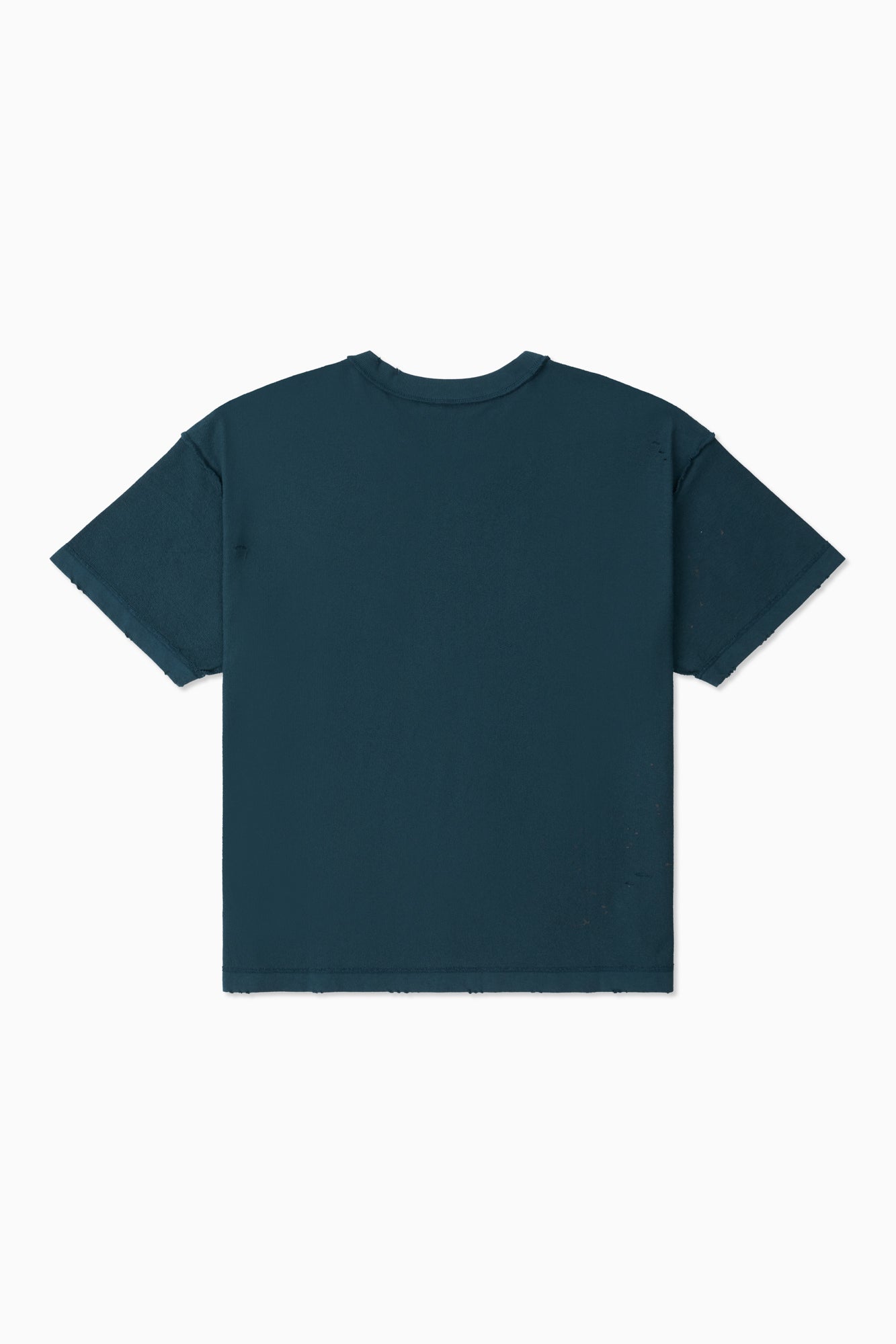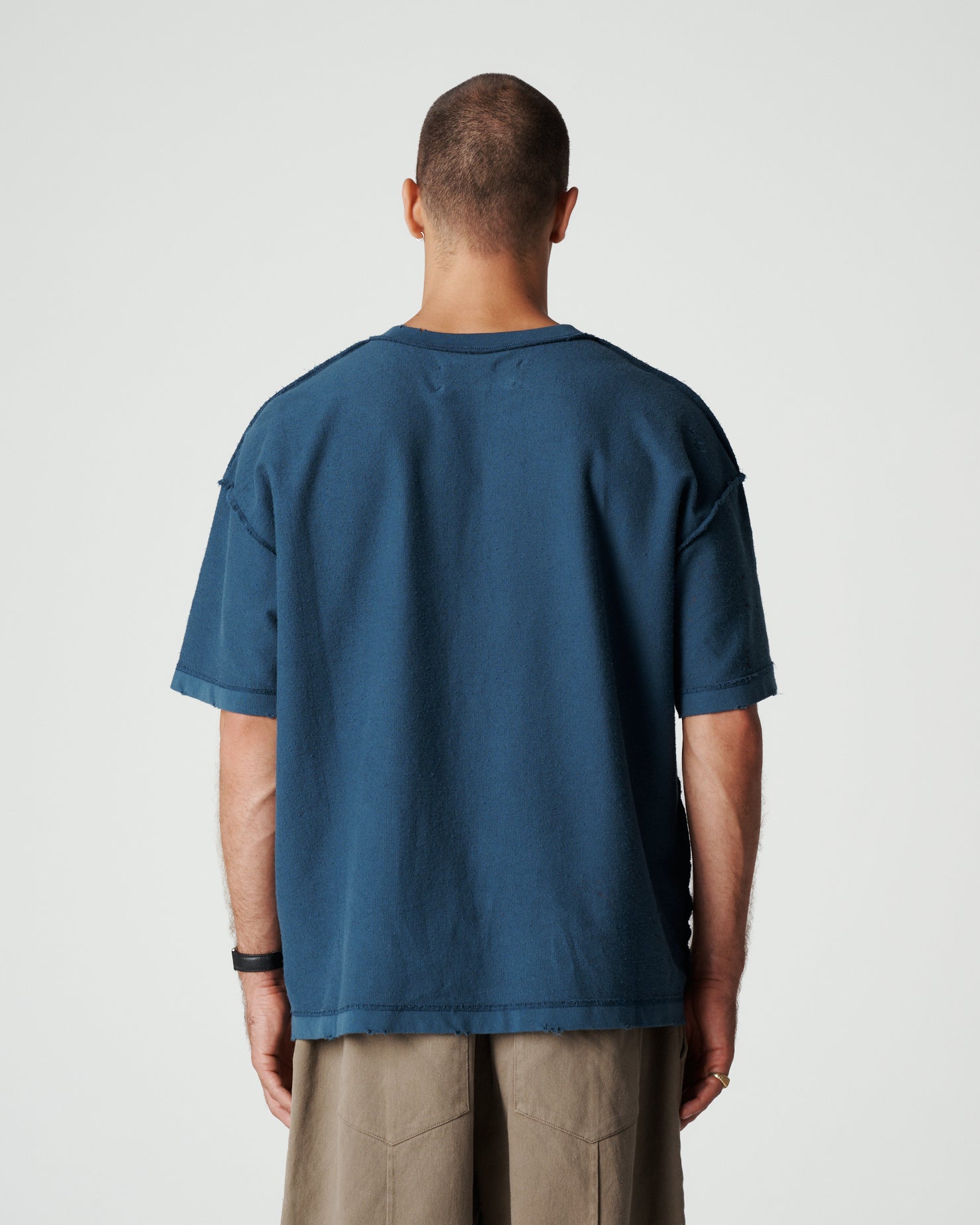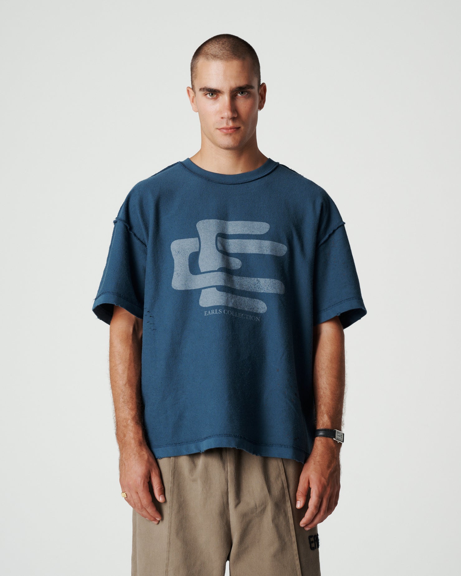 A vintage-inspired essential, the Mono Tee is crafted from heavyweight 240gsm organic cotton and garment-dyed for a rich, lived-in feel. Cut on the reverse for a unique texture, it features distressed seams that add to its worn-in character. A faded EC monogram print completes the design, giving it an effortless, timeworn aesthetic.