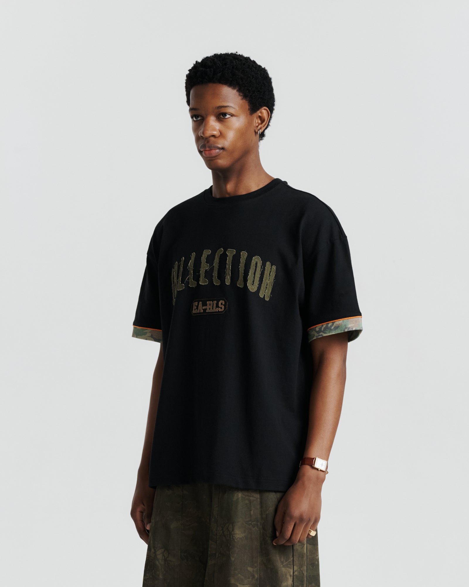 The Patch Tee is a heavyweight jersey t-shirt defined by its bold contrast details and textured finish. Crafted from 310gsm 100% cotton, it features contrasting cuffs and piping for a distinctive edge, while a distressed applique at the centre-front chest adds a rugged, tactile element. Cut to a boxy, oversized fit, it offers both comfort and statement appeal.