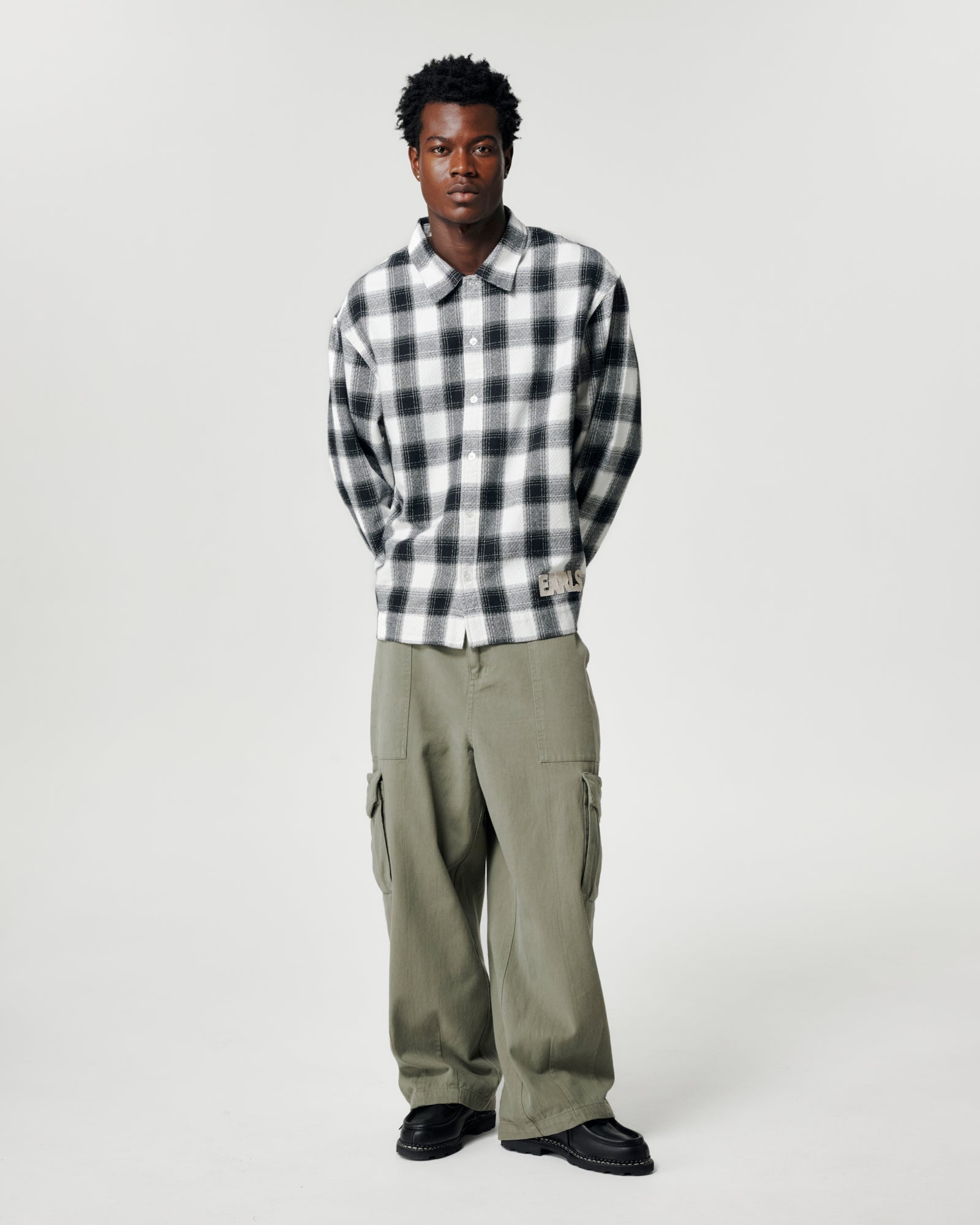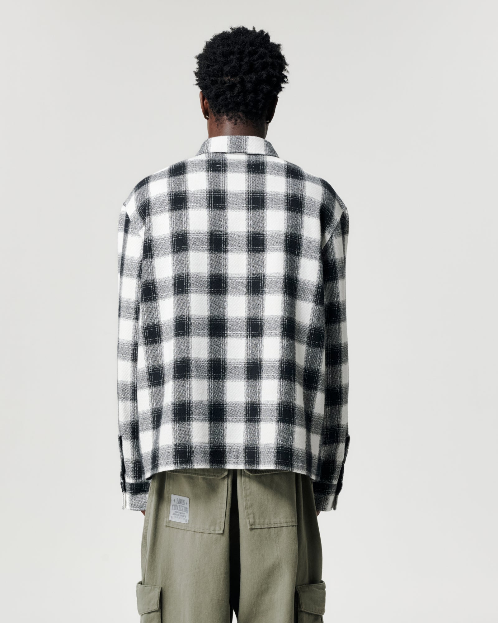 A timeless staple with subtle detailing, the Plaid Overshirt is crafted from soft cotton plaid and cut in a boxy silhouette for a relaxed, easy fit. Designed with a straight hem for clean layering, it bridges the space between shirt and outer layer. Finished with an Earls applique at the hem, it adds a considered touch to an everyday classic—effortless, functional, and grounded in wearability.