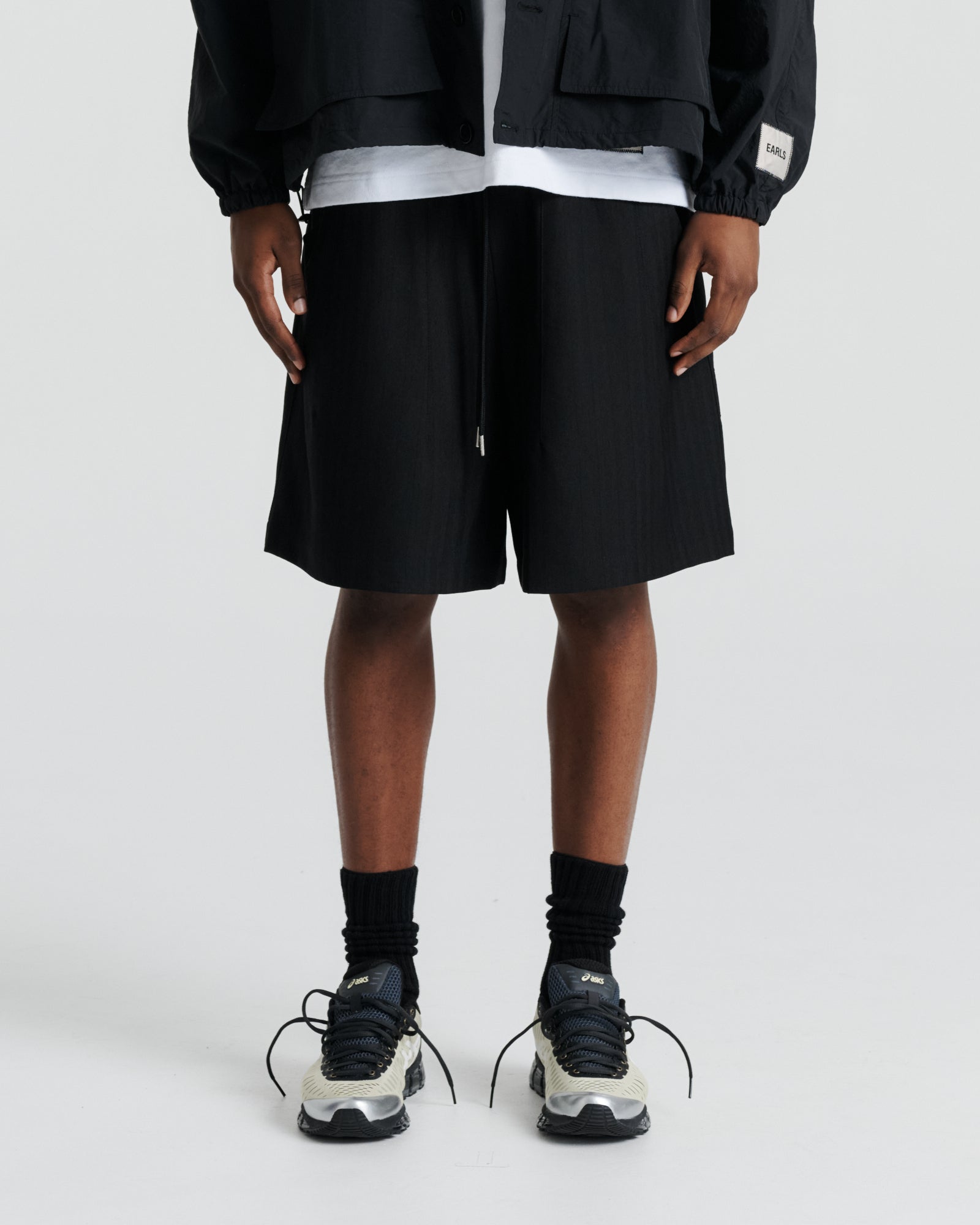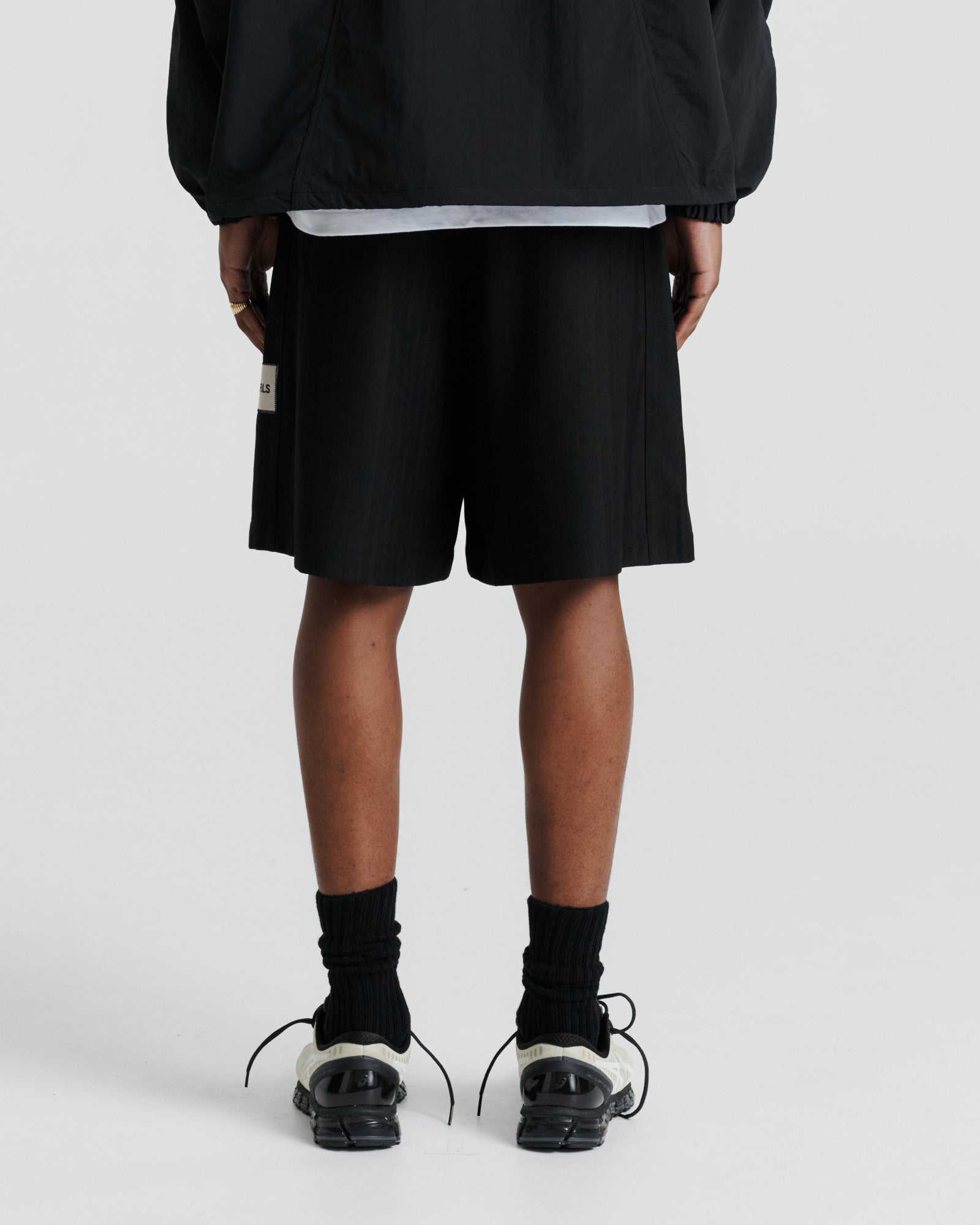 The Relax Short is a wide, oversized short designed with the same effortless ease as the Relax Pant. Built for comfort and fluid movement, it features an elasticated waistband with internal drawcords for an adaptable fit. Rounded pockets bring a soft utilitarian touch, while dart detailing and an 'Earls' patch at the side leg elevate its minimal finish. Cut from a smooth, stretch-infused fabric, the short balances structure with all-day wearability.