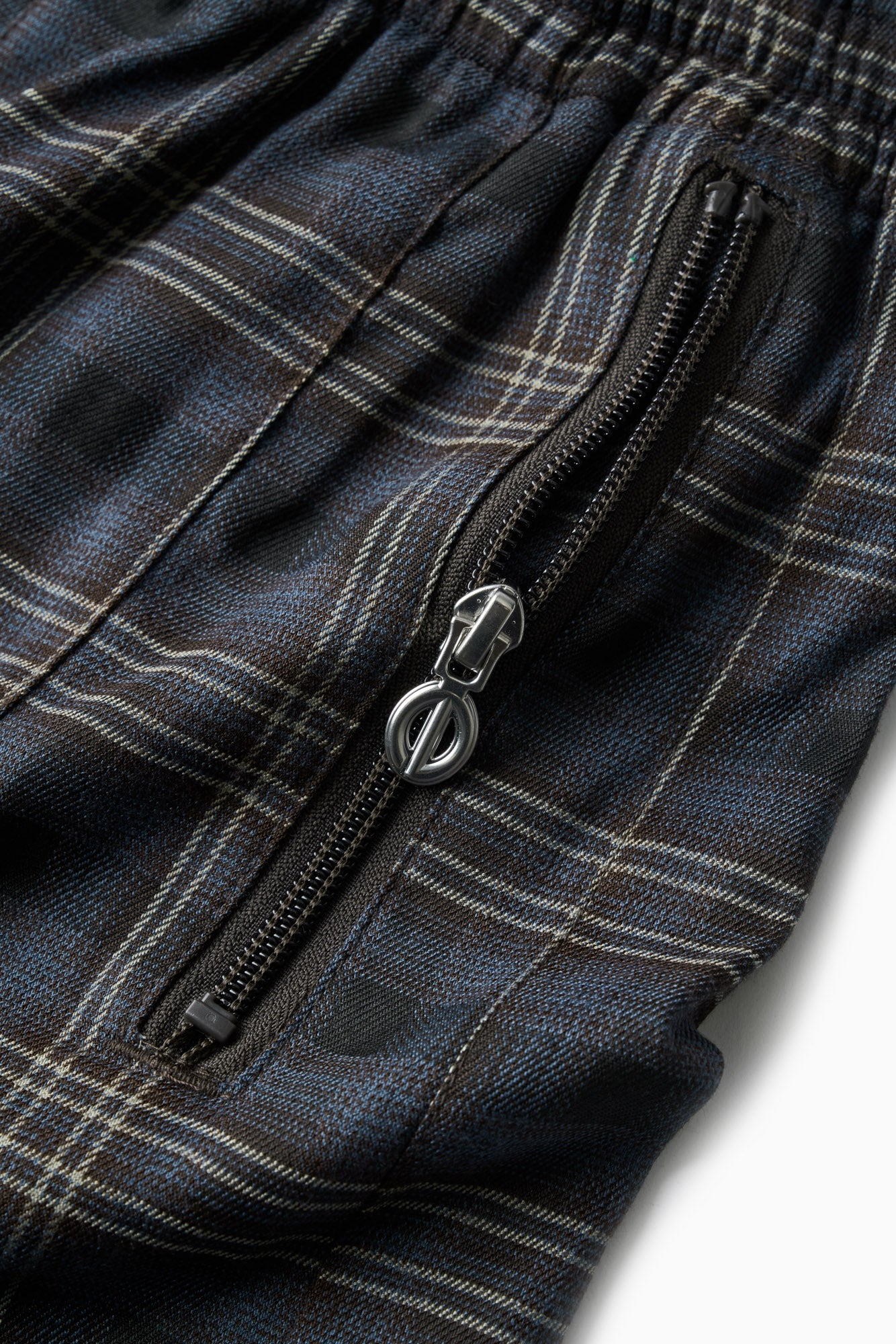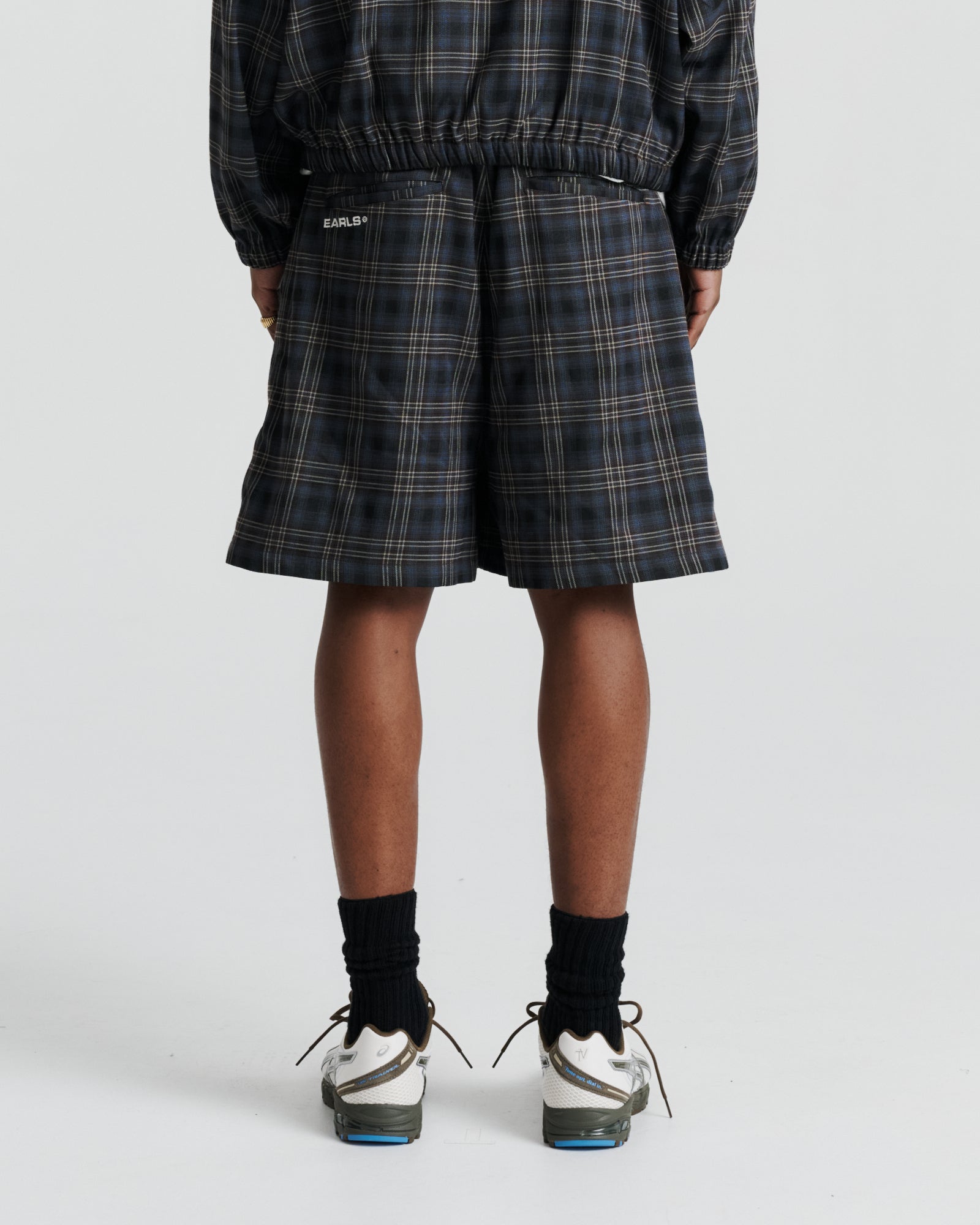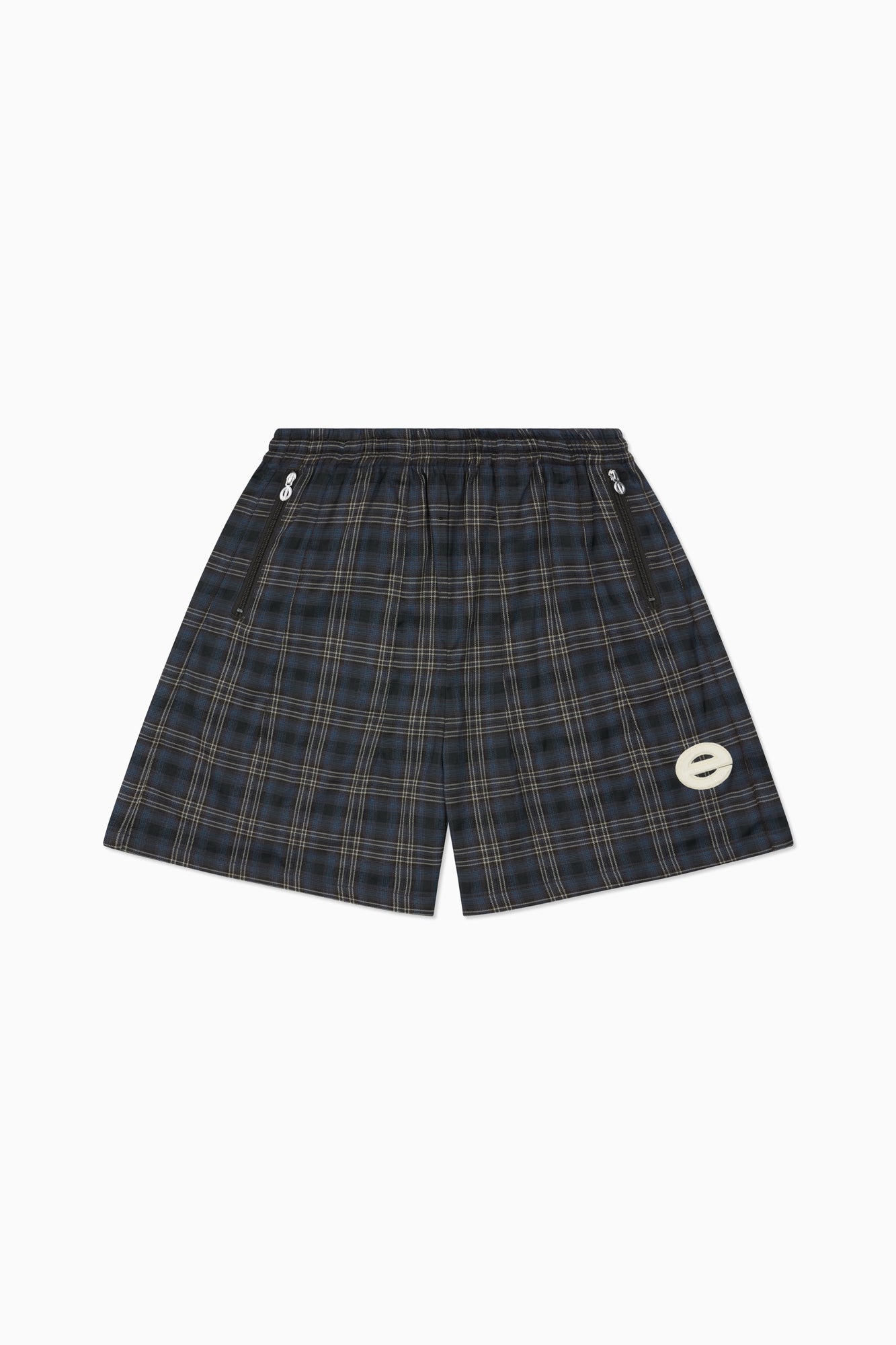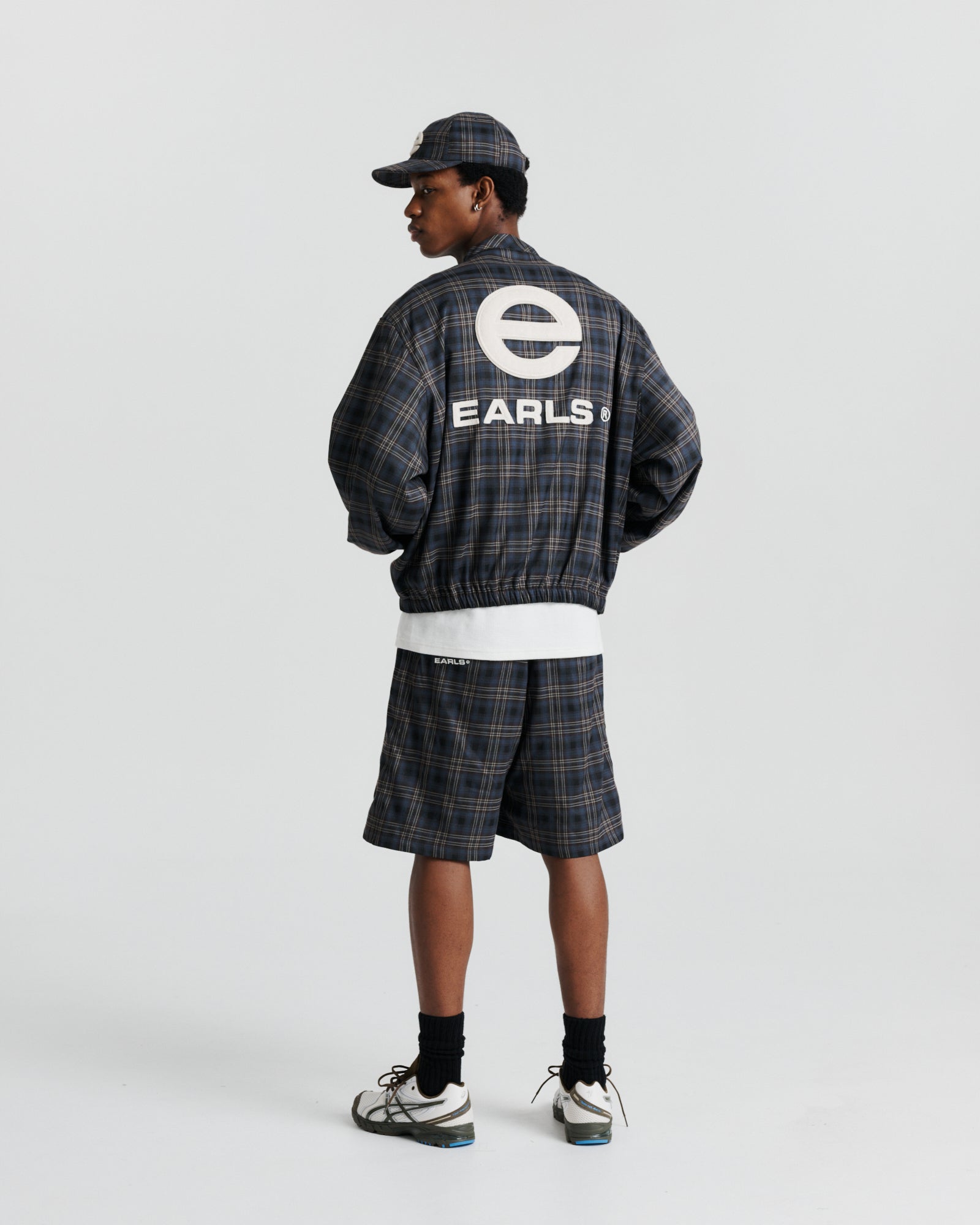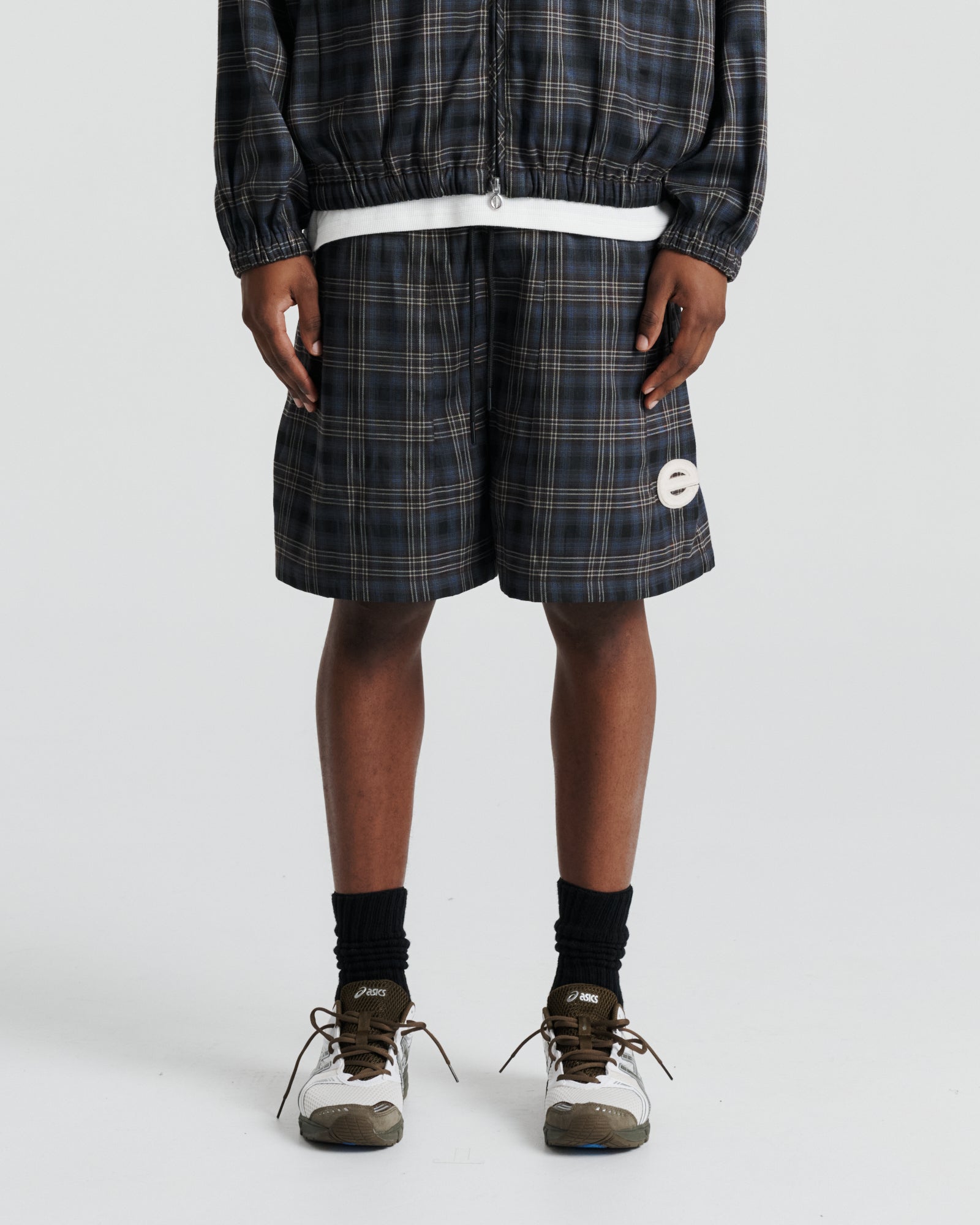 The Sport Track Short carries forward the bold energy of the Sport Bomber into an easy, everyday silhouette. Cut from the same specialty tartan fabric with subtle stretch, the short features a relaxed fit with an elasticated waistband for comfort. Custom-moulded ‘E’ zipper pullers elevate the side pockets, while a small felt ‘E’ appliqué at the front leg adds a signature finish. Designed to pair back with the Sport Bomber, but strong enough to stand on its own.