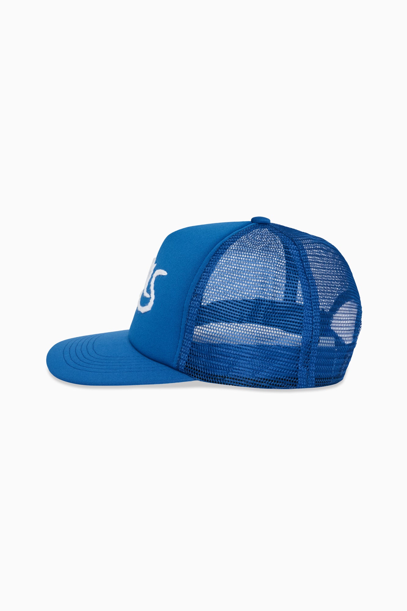 The Thick Stitch Trucker is a refined trucker cap that champions clean, elevated style through its application, fit, and finishing, showcasing intricate hand stitched 'Earls' embroidery on the front.