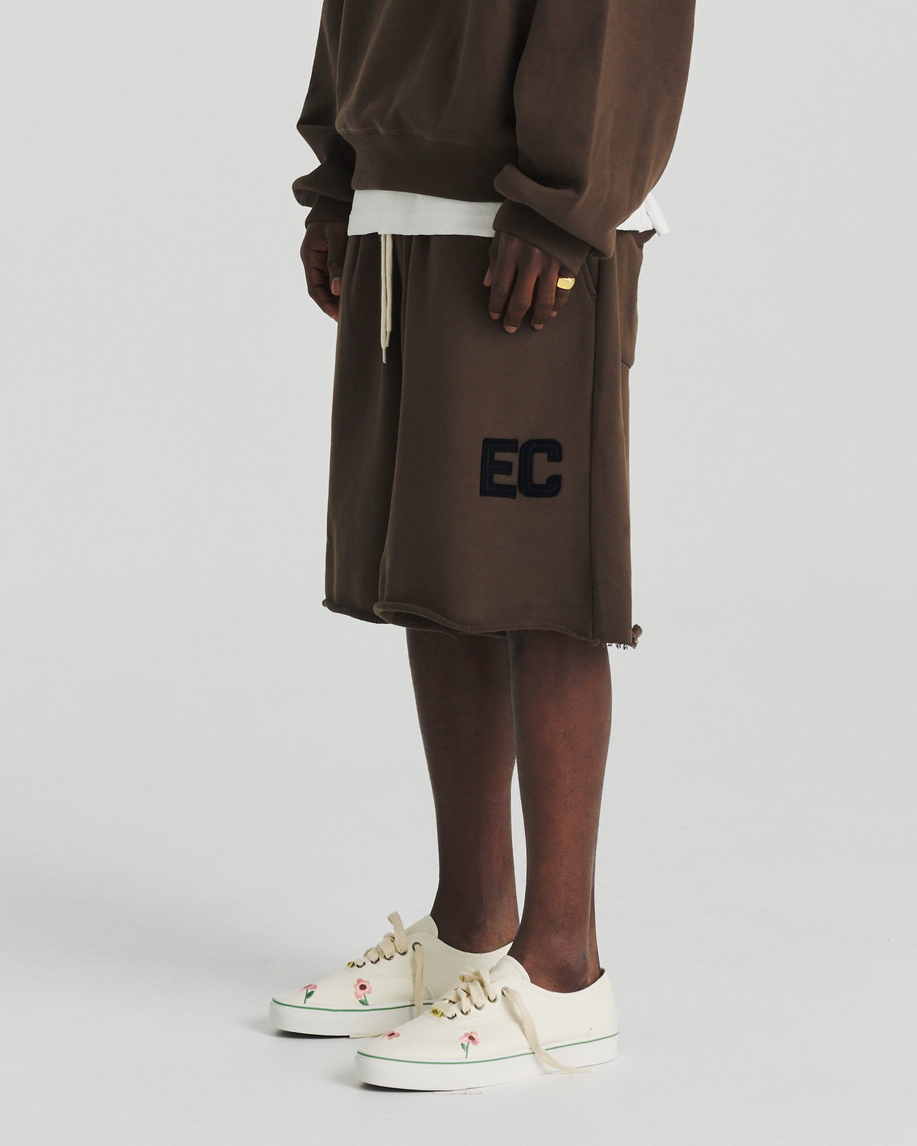 The Warm Up Short is a heavyweight staple built for ease and comfort. Constructed from dense 420gsm cotton terry, it features a raw edge hem and natural twisted cotton drawstrings for a relaxed, lived-in feel. The elasticated waistband provides a secure yet flexible fit, while an oversized, below-knee silhouette reinforces its athletic inspiration. Finished with a heavy branded applique at the front, the short blends vintage sportswear cues with contemporary detailing.
